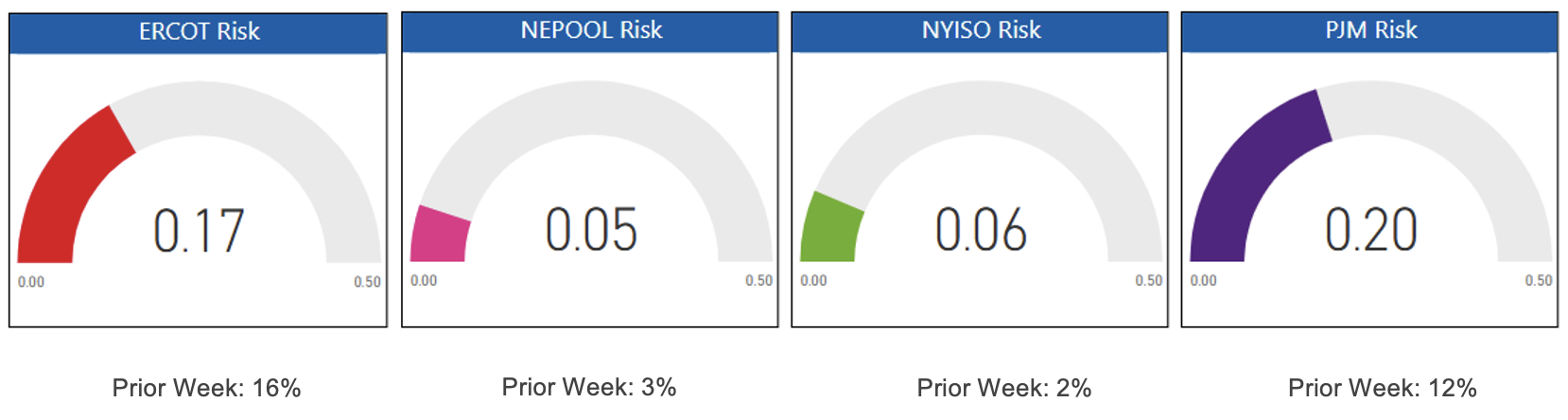 The risk appetite gauges above reflect the mix of fixed, flex, and index volume priced in the period for customers with peak demand above 750 KW.
